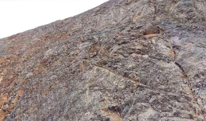 类柔性网覆盖包裹在所需防护斜坡或岩石上,以限制坡面岩石土体的风化剥落或破坏以及为岩崩塌(加固