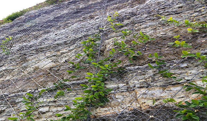 主动防护系统是用以钢丝绳网为主的各类柔性网覆盖或包裹在需防护的斜坡或岩石上,以限制坡面岩土
