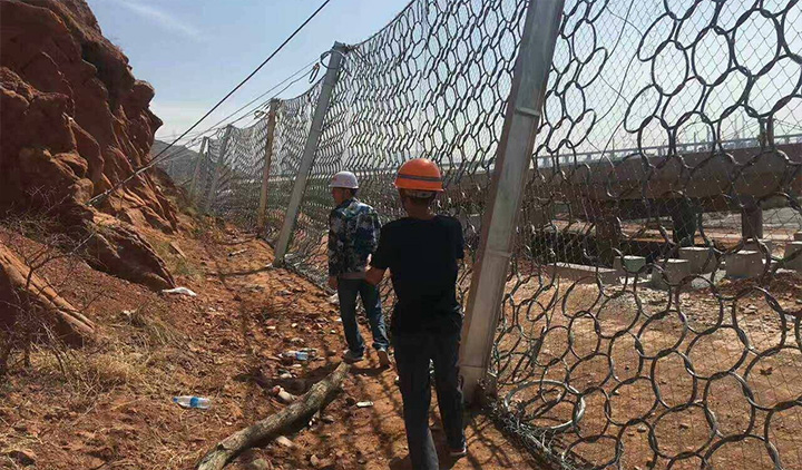被动防护系统是将以钢丝绳网为主的栅栏式柔性拦石网设置于斜坡上相应位置,用于拦截斜面坡上的滚