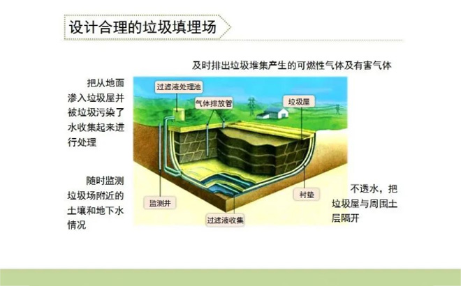 在对垃圾填埋场进行处理时,需要考虑到其环境影响因素,并制定有效的环境保护措施。目前,我国常见的垃圾填埋场环境保护措施包括:防渗处理、渗滤液收集和处理、封场等。
